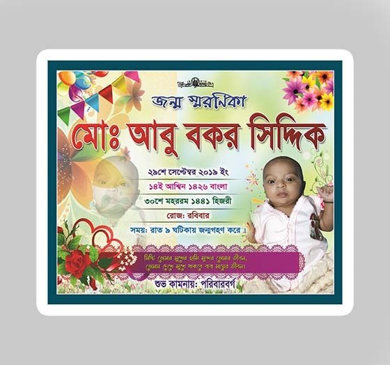 🔹 সম্পূর্ণ কাস্টমাইজড ডিজাইন — শিশুর নাম, ছবি, জন্ম তারিখ, মা–বাবার নামসহ প্রয়োজনীয় সব তথ্য সুন্দরভাবে সাজানো।