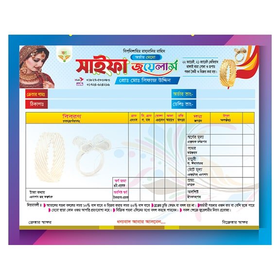 • রশিদ সাইজ → (৮.০” x ৬”)